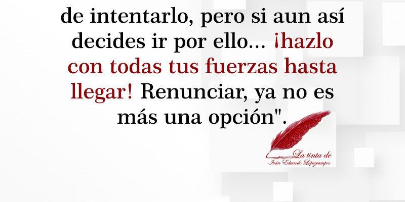 Jul262021BlogCategoría: BlogPor Administrador26 de julio de 2021Deja un comentarioEtiquetas: FrasesinspiradorIván Eduardo LópezcamposIvánEduardoLópezcamposmotivaciónmotivanteMotivar Compartir Share on FacebookShare on Facebook Share on WhatsAppShare on WhatsApp TweetShare on Twitter Autor: Administrador Navegación entre publicacionesAnteriorPublicación anterior:AJUSTA LA REALIDAD…SiguientePublicación siguiente:HOY MUERO DE AMORRelated PostsPERSONAS INTERMITENTES30 de septiembre de 2023EL REGRESO CARTA 54 (CARTAS DESDE AGUA VIVA)20 de septiembre de 2023ESPEJO Y VELA 5 DE 519 de septiembre de 2023ESPEJO Y VELA 4 DE 519 de septiembre de 2023ESPEJO Y VELA 3 DE 519 de septiembre de 2023ESPEJO Y VELA 2 DE 519 de septiembre de 2023